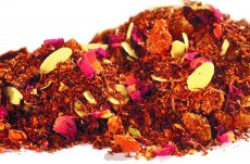 Rooibos d’Afrique du Sud, arômes «pain d’épices», orange amère et cerise noire.La joie de Noël s’exprime sans retenue dans ce mélange savoureux enrichi de morceaux de gingembre, de clous de girofle, de baies rouges et d’écorces d’orange. Edition Limitée.